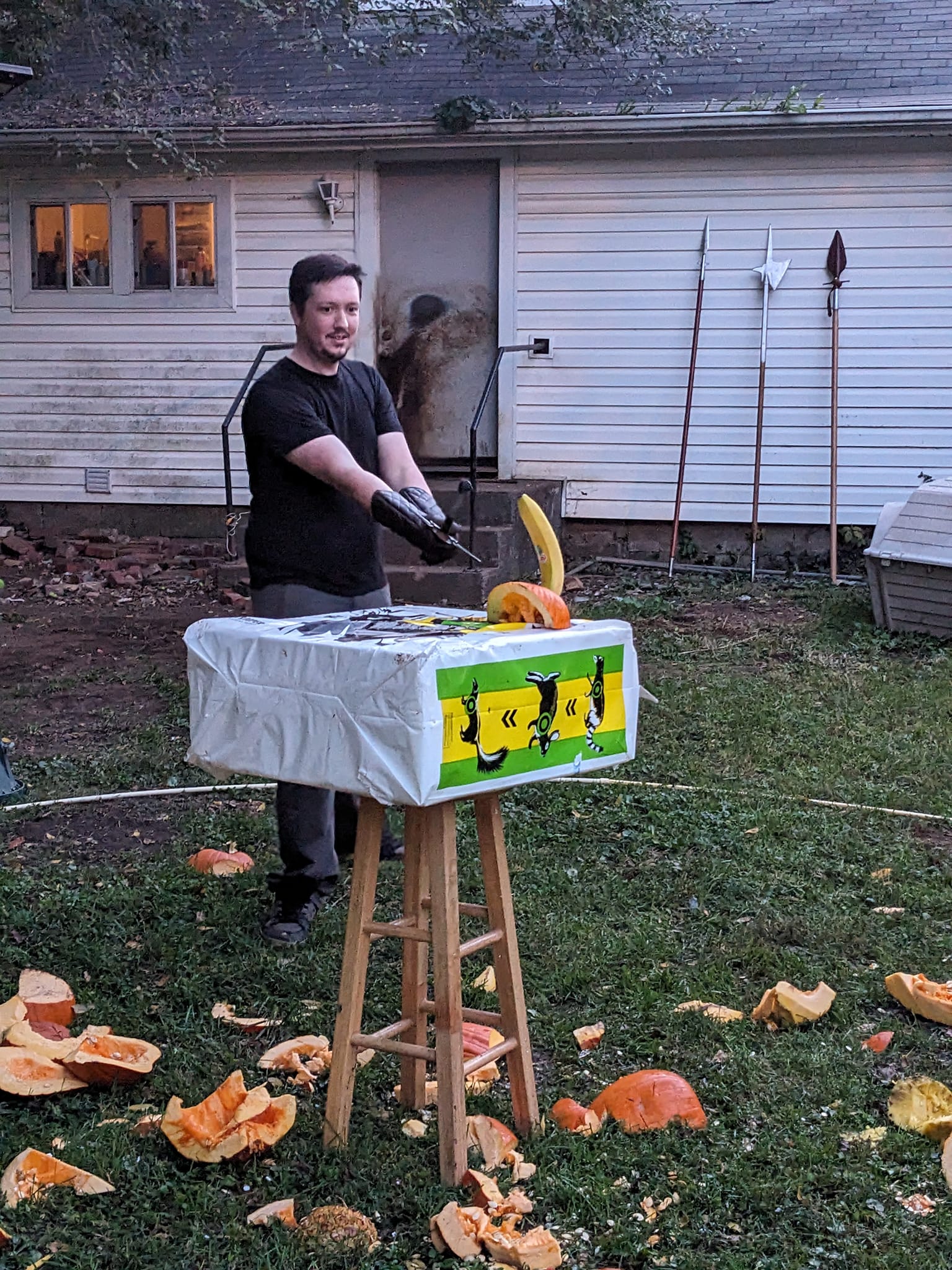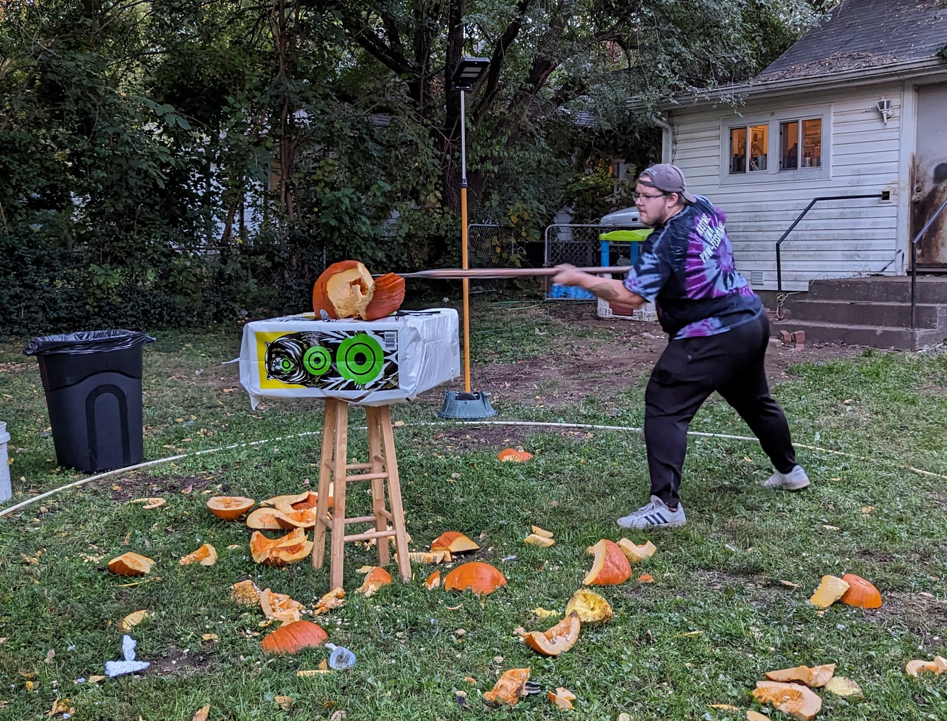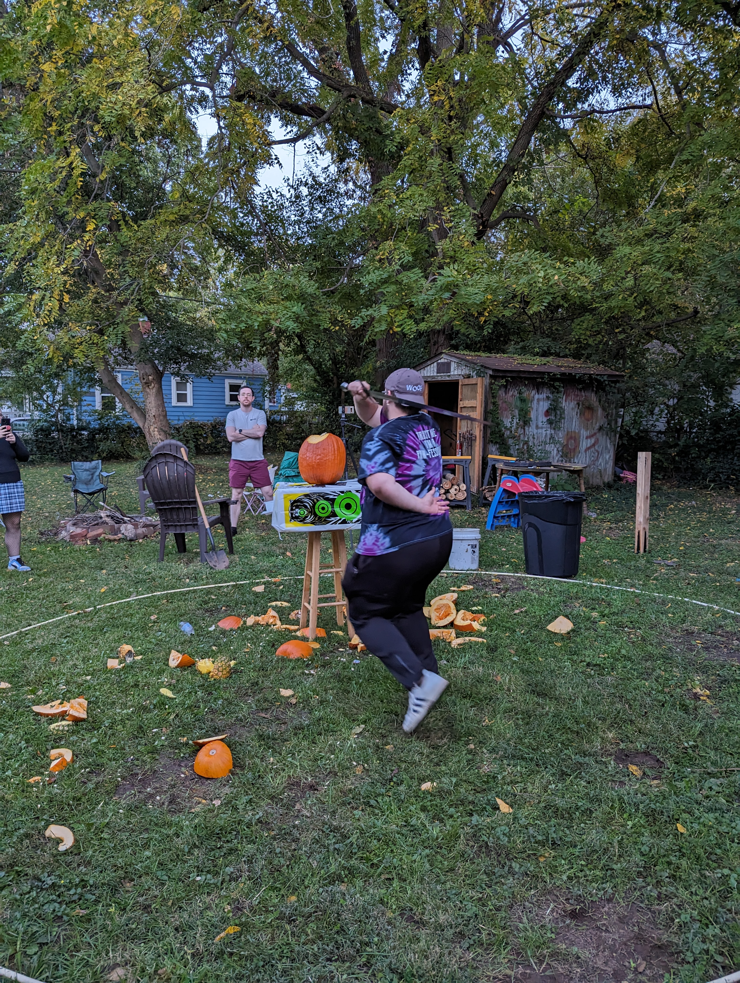 Its been a few years since we've had a Choppening, so for anyone who doesn't know, we all gather in my back yard to have a little bit of dumb fun cutting things with sharps! Popular targets include plastic bottles, pumpkins, or any produce that looks like it could do with a good chopping!