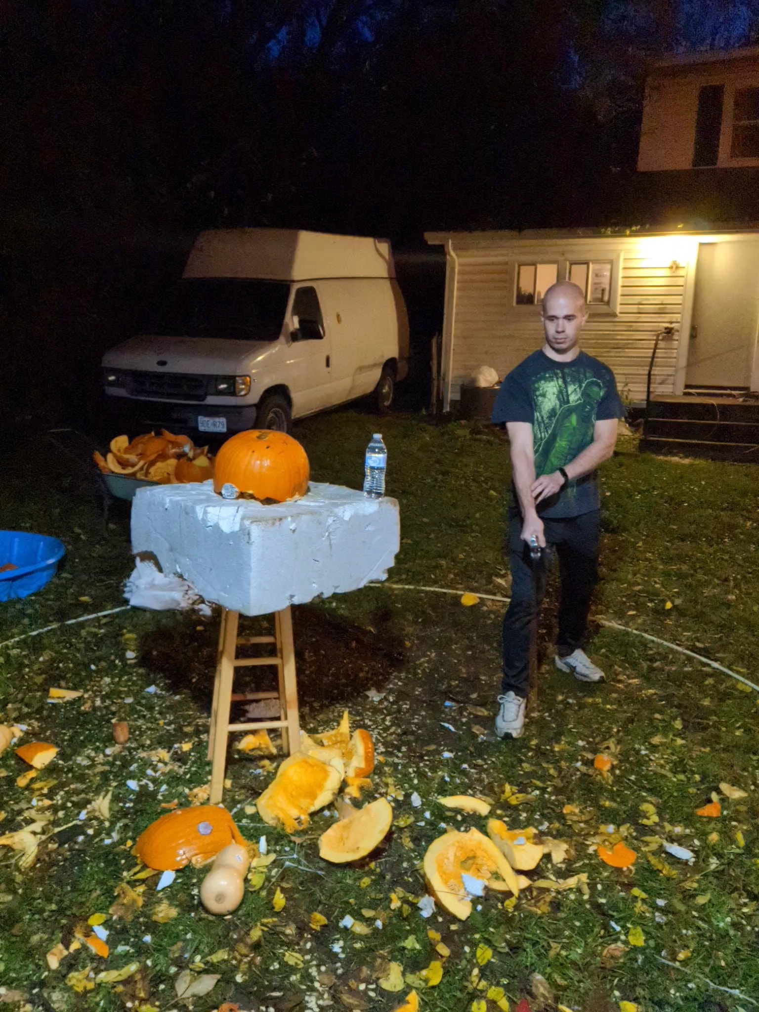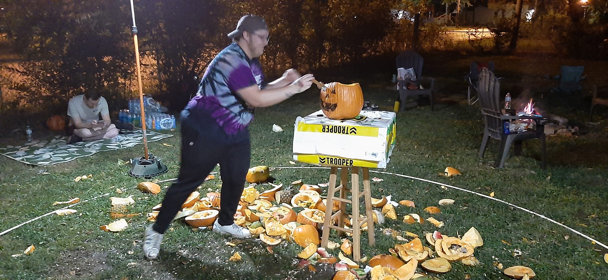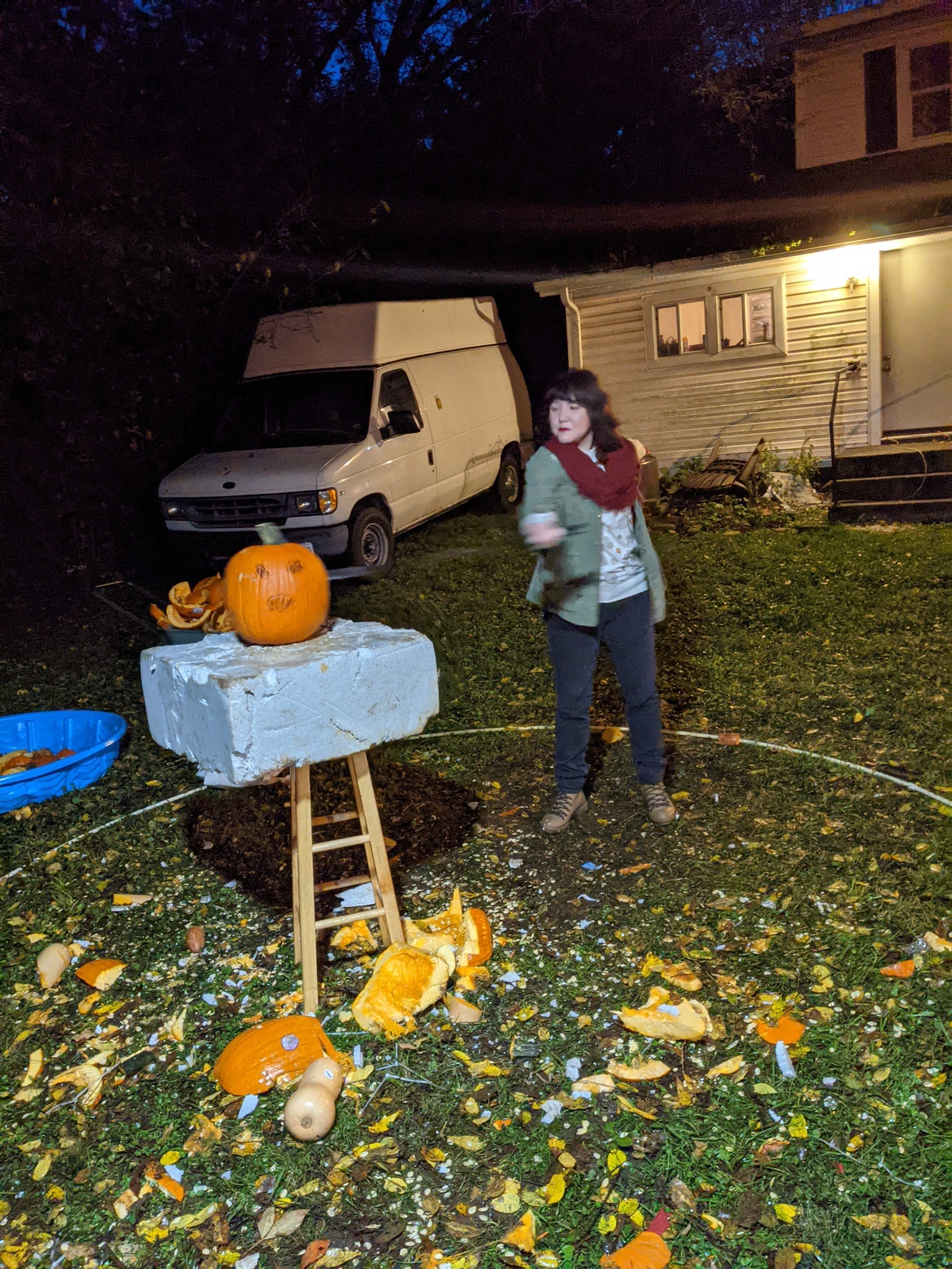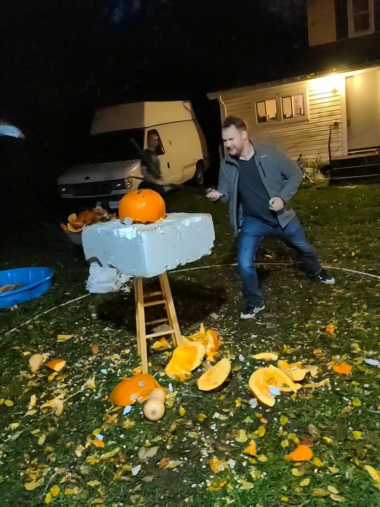 Its been a few years since we've had a Choppening, so for anyone who doesn't know, we all gather in my back yard to have a little bit of dumb fun cutting things with sharps! Popular targets include plastic bottles, pumpkins, or any produce that looks like it could do with a good chopping!